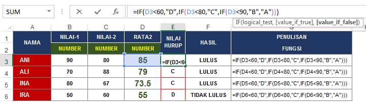 | MULTI IF | Mencari Nilai Jika Kondisi BENAR/SALAH Dengan Banyak Perbandingan | |