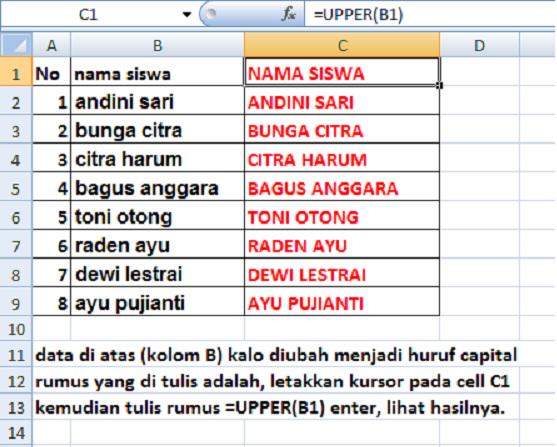 | UPPER | Merubah Huruf Teks Menjadi Huruf Besar | |